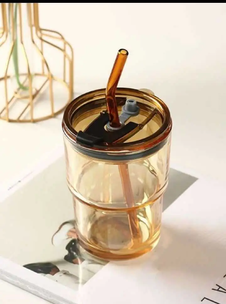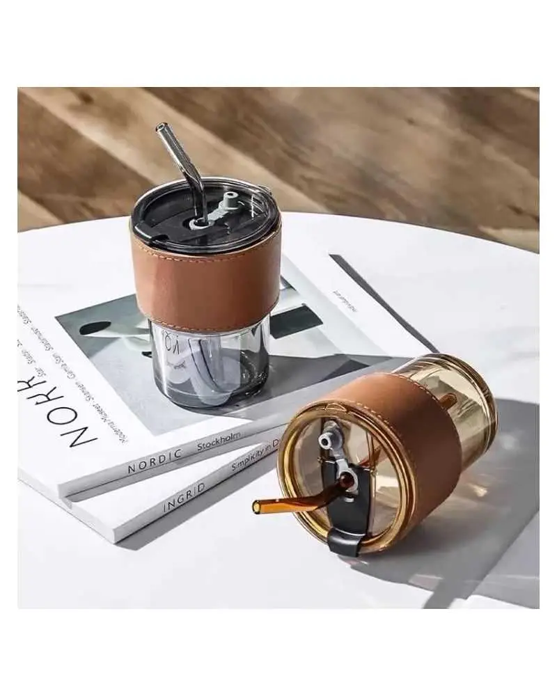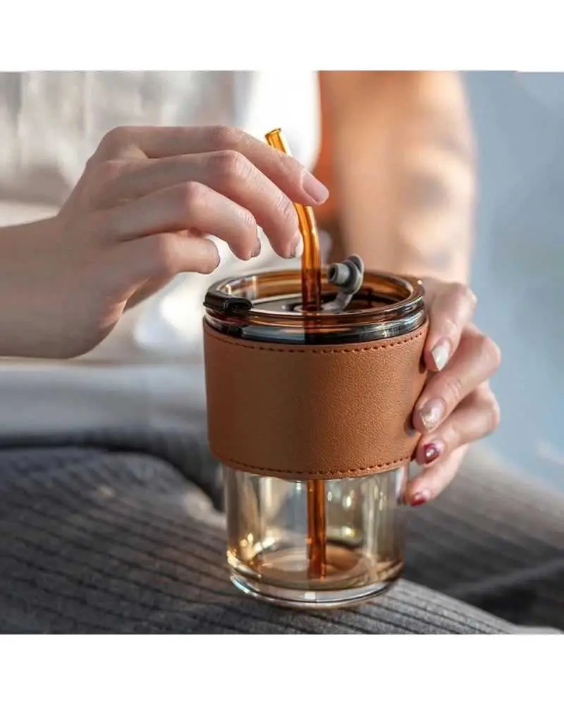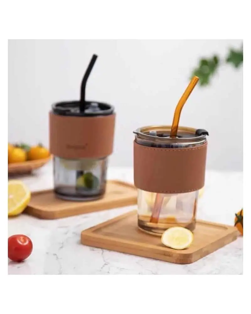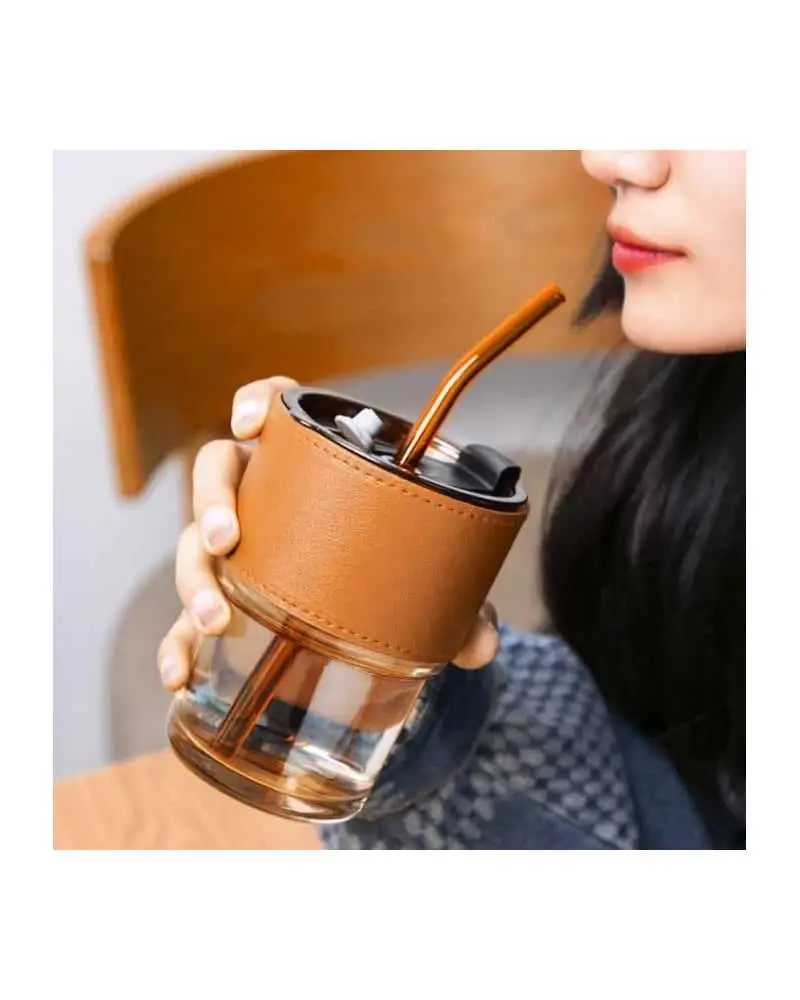 Tasse avec paille en verre