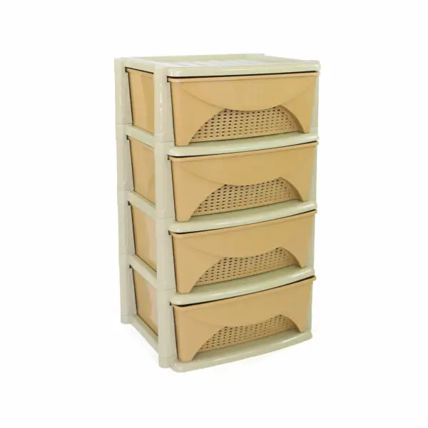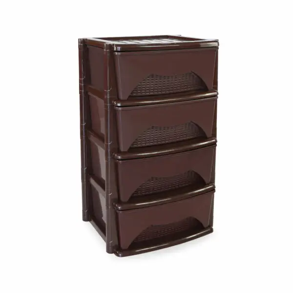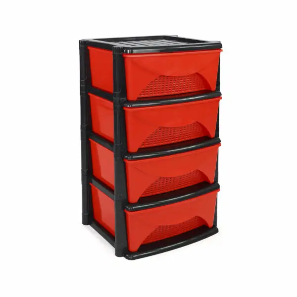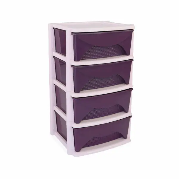 - Cette armoire en colonne est équipée de 4 tiroirs de rangement pratiques, offrant solidité et robustesse.