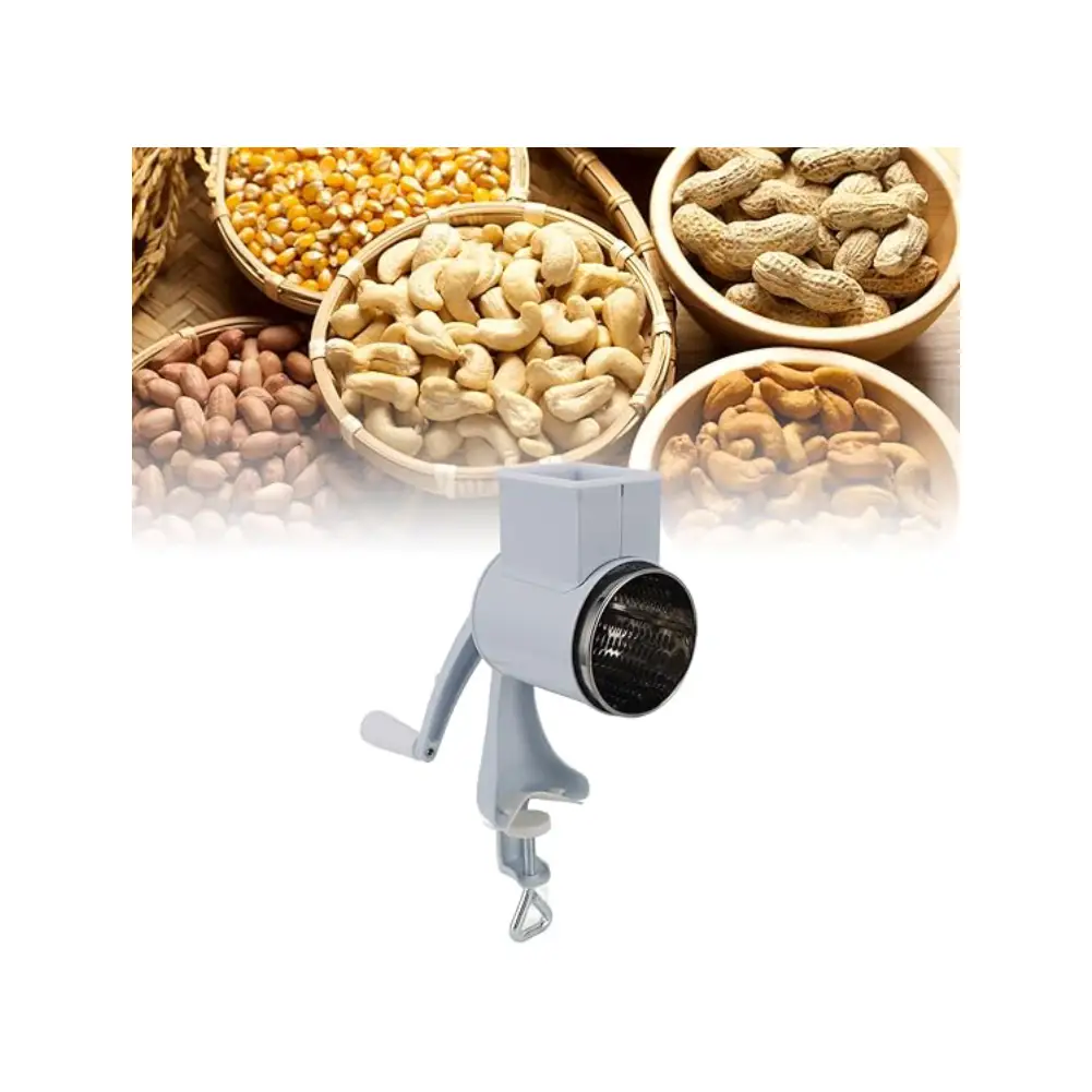 - Hachoir multi-usage : râpe rotative pour fromages toutes sortes de muscade, amandes, noix de cajou, pistaches, noix de coco séchée.