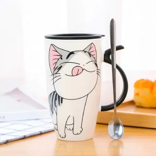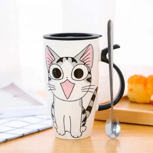 - Couleur principale : Blanc avec motif chat et poignée noire